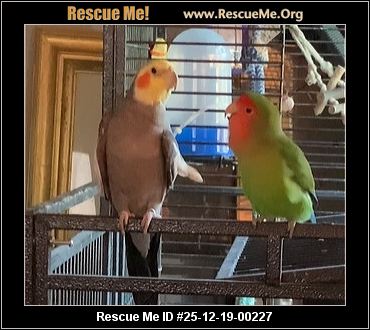 17yrs old male cockatiel(can't fly)named Duke and 9 yrs old female Lovebird named Sweetie. Must go together.